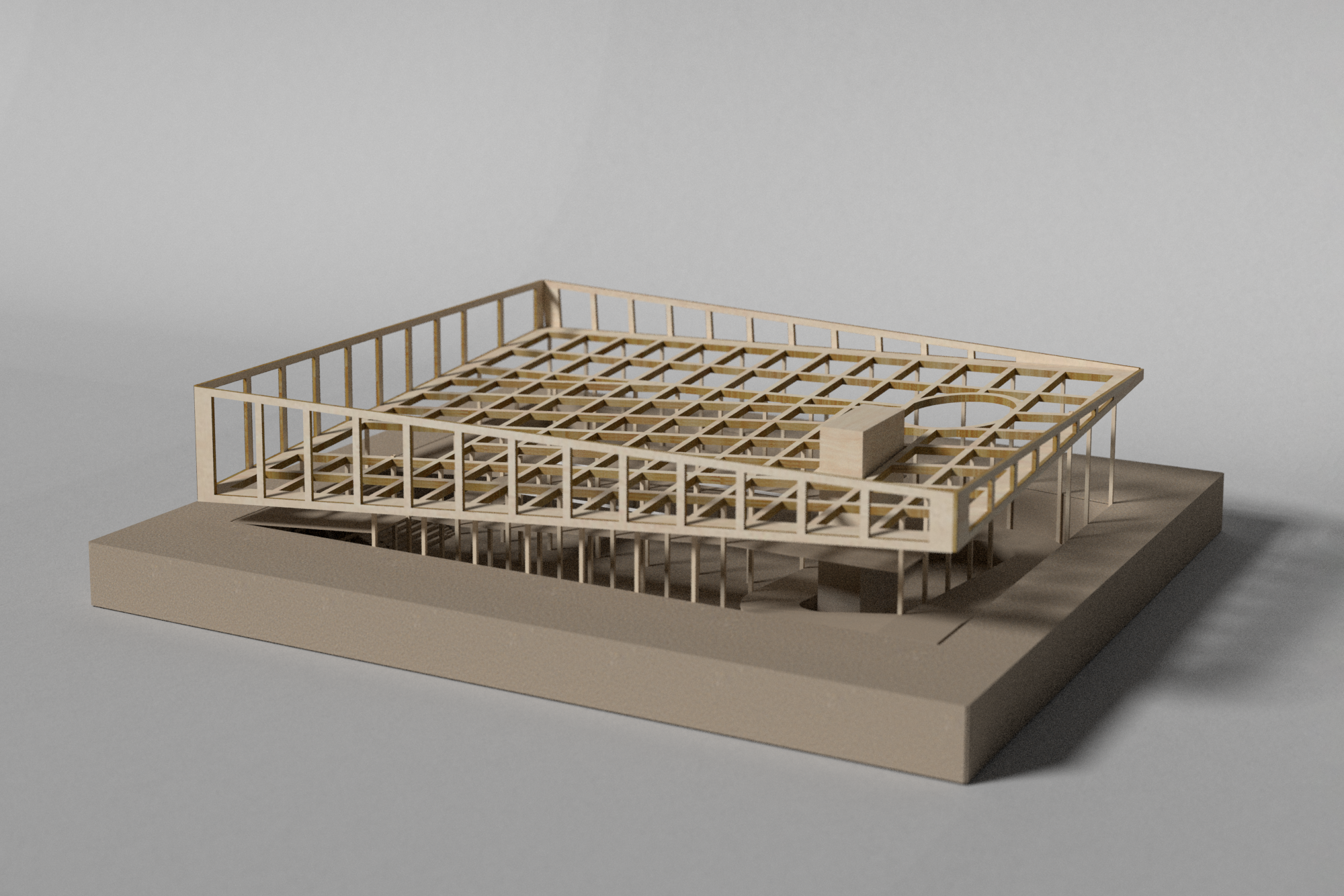 This project invests in furthering the existing ground by introducing new grounds with an overarching Blue Roof and crafting a three-dimensional meandering experience on a continuous artificial landscape that is built around figural volumes of distillery production.
